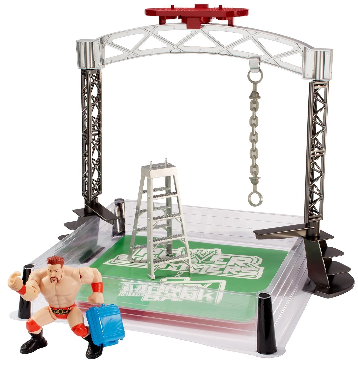 Includes the ring, super-structure, movable ladder, Money in the Bank briefcase and 1 Power Slammers figure